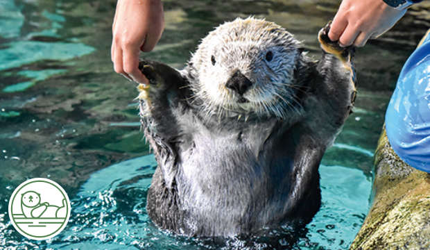 浮かんだり、潜ったり、食事をしたり、自由なラッコの姿を見ることができます。