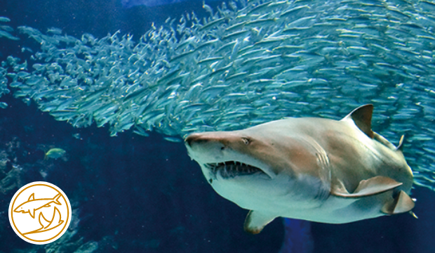 黒潮が流れる九州南部の温暖な海を再現した、水深7メートルの外洋大水槽。上層、中層、低層と、それぞれに自然界で生き残るための生活スタイルが見てとれます。