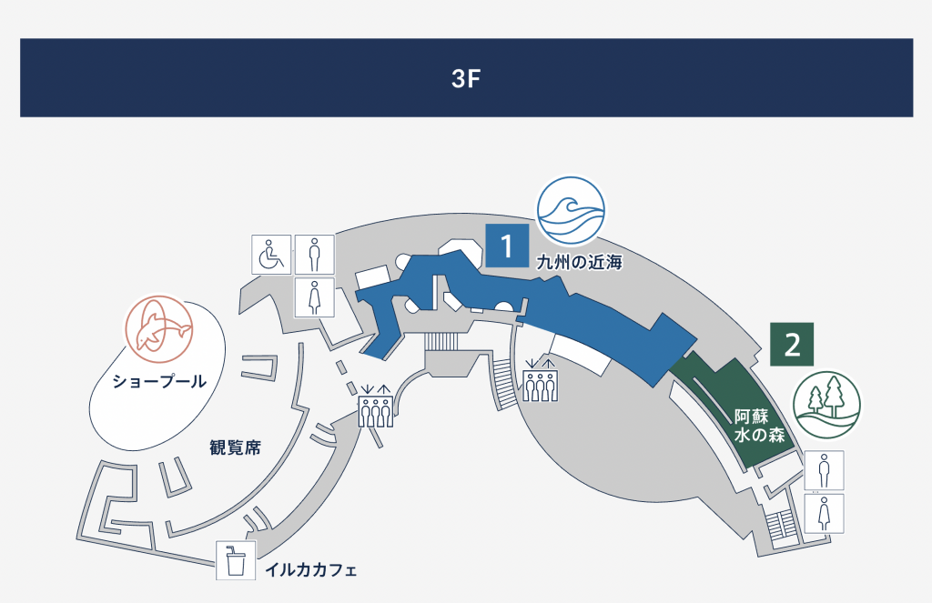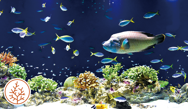 東シナ海、太平洋、日本海、瀬戸内海の4つの海に囲まれ、そのすべての県が海に面している九州。ここでは、各地域の特徴的な海をそのまま水槽内に再現しました。